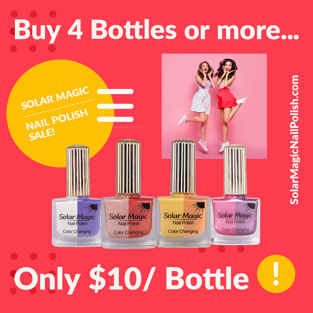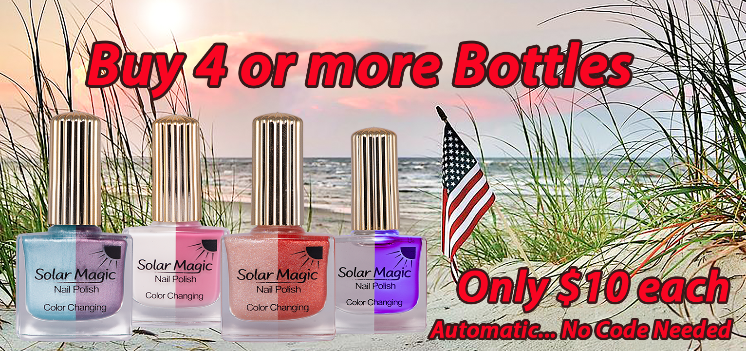 4.Seal the surface and edge of the nail with non-ultraviolet top coat to let the UV rays in to change the color (check out Solar Magic Nail Polish top coats). It’s important to seal the nail polish for the strongest, and longest lasting nail color.